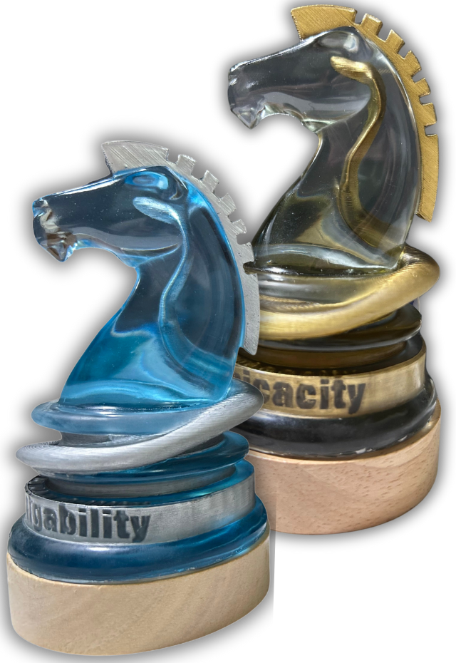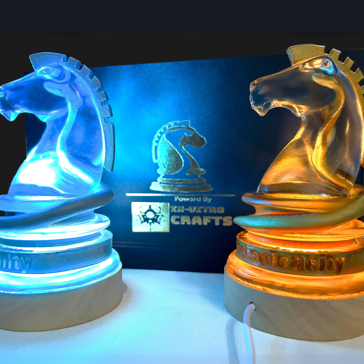 Illuminated 3D sculptures of the Infamous KNIGHT emblem carrying to the Grandmaster’s quote “My Unmatched Perspicacity coupled with Sheer Indefatigability makes me a feared opponent in any realm of human endeavor”.