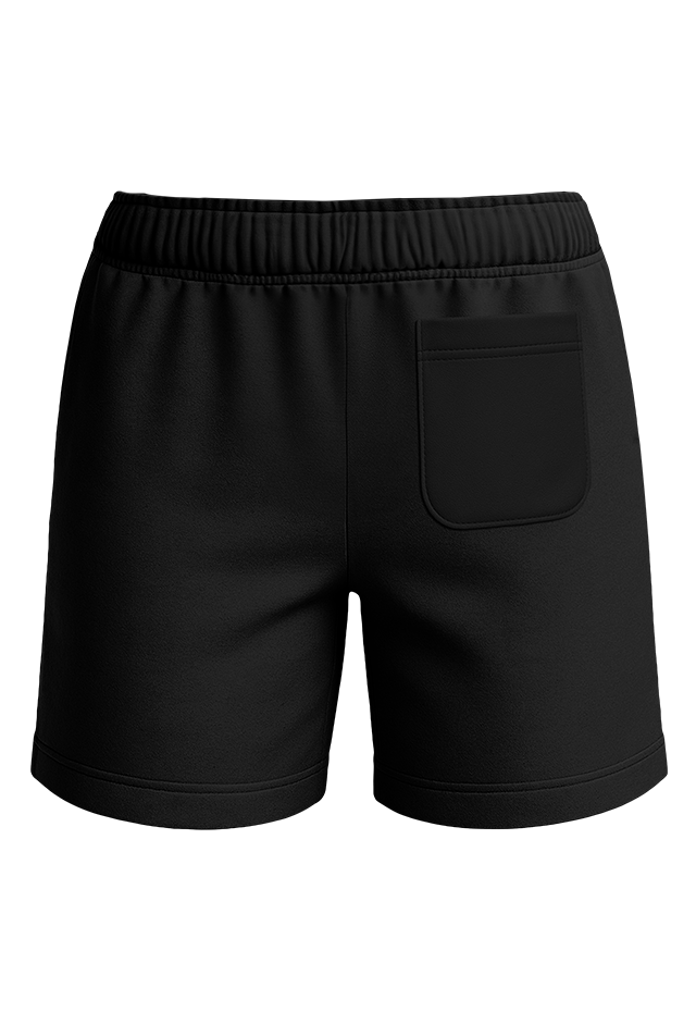 Sweat shorts, self-fabric elasticated waistband, tonal internal drawcord, 2 side pockets, single pocket at back.