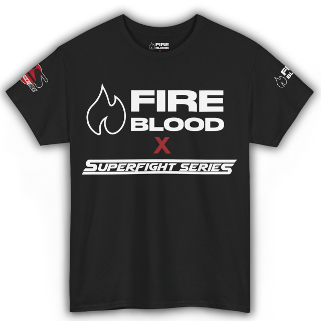 Official Super Fight Series X FIREBLOOD Merchandise. Your official fight tee is now here. Get ready for 25th October.
